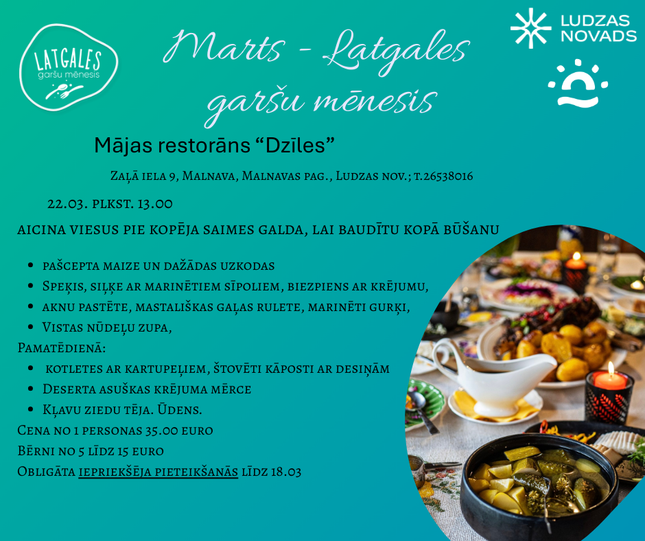 Visa marta garumā (no 1. līdz 31. martam) Latgalē varēs baudīt īpašus piedāvājumus dažādos galamērķos – no tradicionālajiem ēdieniem, kuru receptes mantotas no paaudzēm, pievienojot mūsdienu garšu sajaukumu.