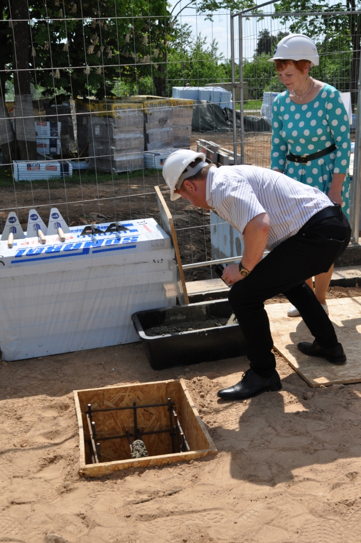Ludzas pilsētas ģimnāzijas jaunā peldbaseina pamatos iemūrē kapsulu ar vēstījumu nākamajām paaudzēm