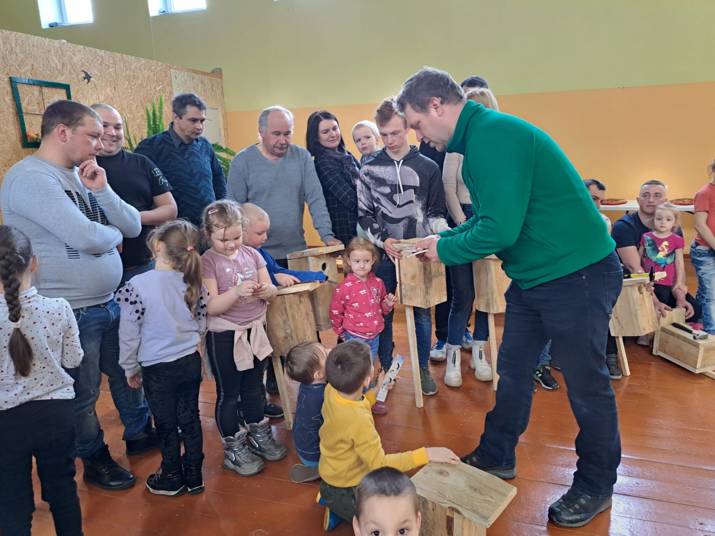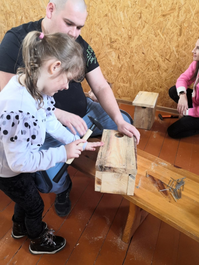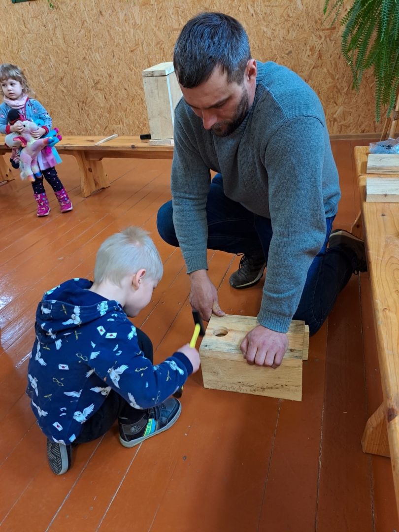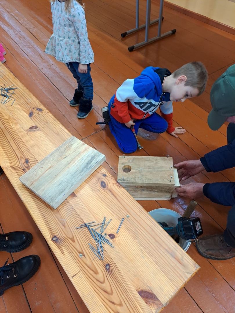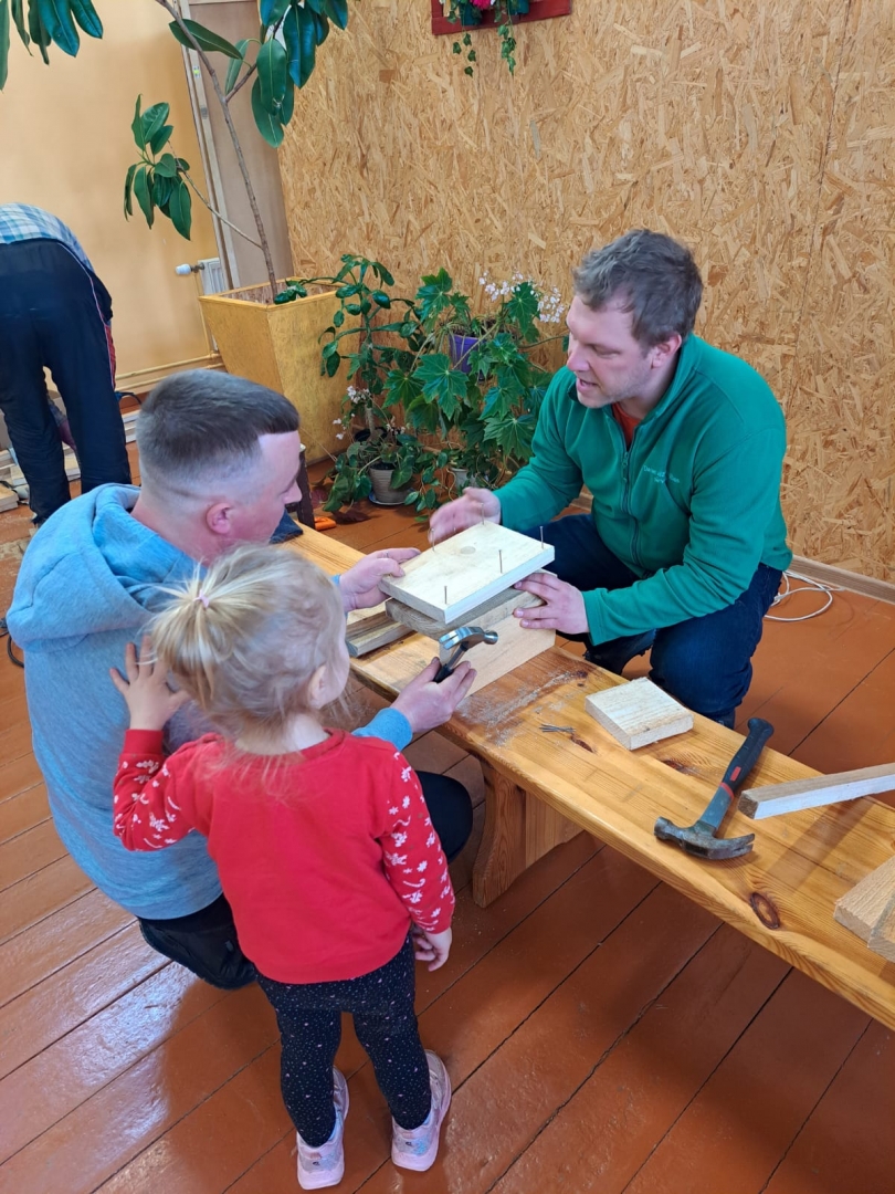 Putnu vērotājs Dagnis stāstīja par putnu būrīšu veidiem, demonstrēja, kā saviem spēkiem var izgatavot strazdu būri, atklāja, ar ko tas atšķiras no citiem putnu mājokļiem un palīdzēja čaklajiem dalībniekiem.
