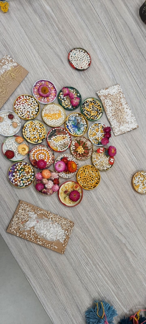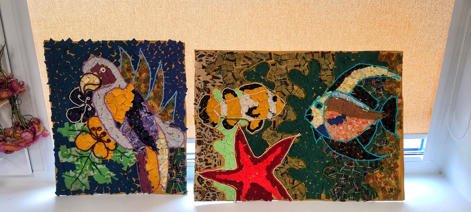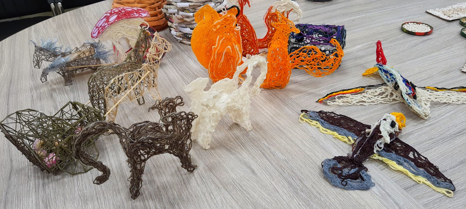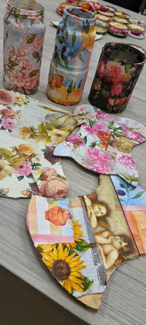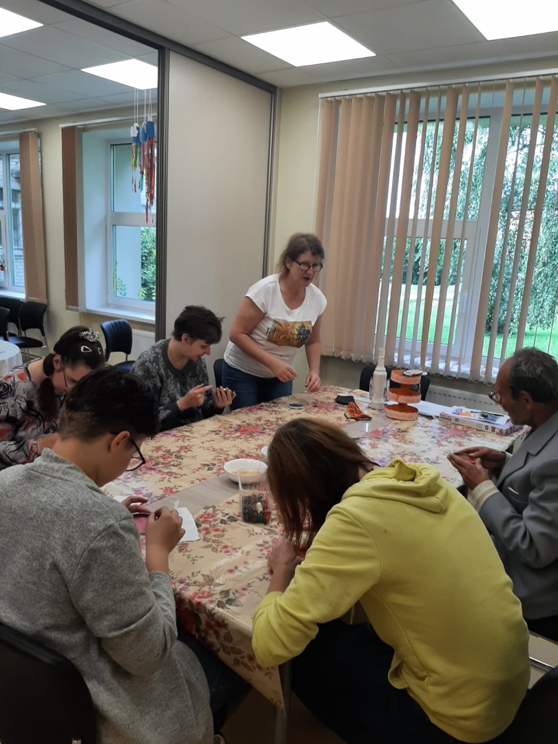 Centra klienti arī vasarā aktīvi darbojas Specializētajās darbnīcās, Rokdarbu darbnīcā notiek nodarbības, kombinējot dažādus materiālus un krāsas, dažādi izpaužot savu radošumu klienti iegūst jaunas iemaņas un prasmes. Sienot, pinot, tinot, plēšot, griežot un līmējot attīstās sīkā motorika, spēja koncentrēties uz vienu darāmo darbu, uzmanība sekot līdzi instrukcijām. Caur vienkāršu uzdevumu, procesa gaitu un paveikto – rezultātiem palielinās pašapziņa un spēja iejusties darba grupā. Foto apskatā var redzēt klientu paveikto: