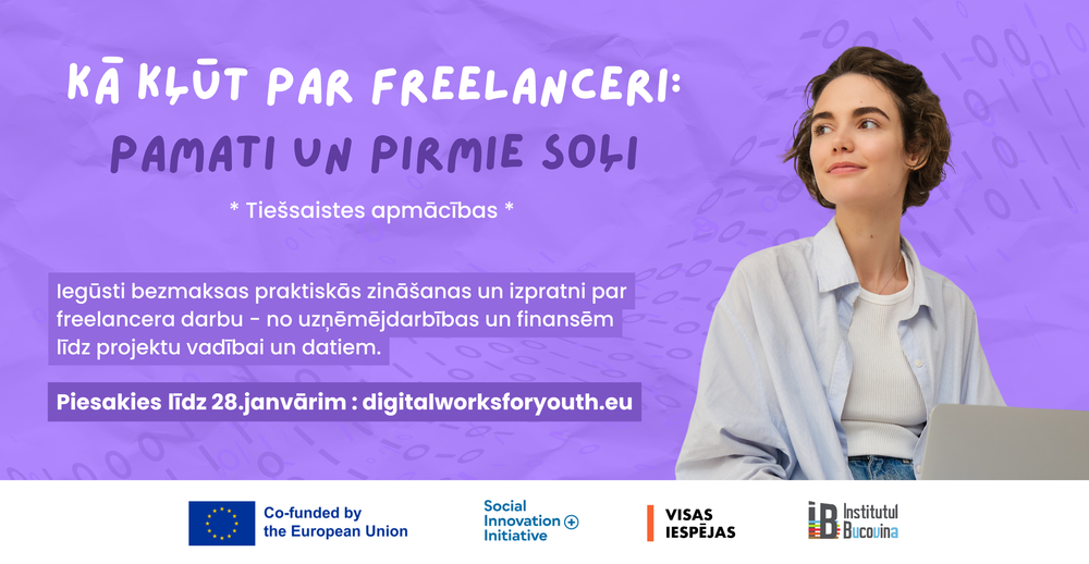 No 2. februāra līdz 25. martam norisināsies “Digital Works For Youth” apmācību programma jauniešiem, kuri šobrīd nemācās vai nestrādā, vai domā par karjeras maiņu vai vēlas sākt pelnīt ar savām prasmēm, strādājot patstāvīgi.