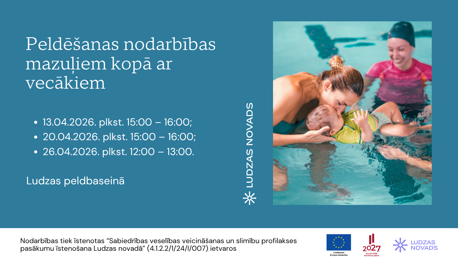 Pasākumi tiek īstenoti Eiropas Sociālā fonda Plus līdzfinansētā projekta Nr. 4.1.2.2/1/24/I/007 “Sabiedrības veselības veicināšanas un slimību profilakses pasākumu īstenošana Ludzas novadā” ietvaros. Projekta pasākumus finansē Eiropas Sociālais fonds Plus, valsts un Ludzas novada pašvaldība.