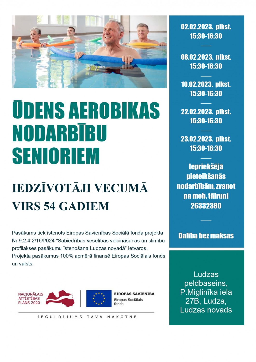 Projekta ietvaros tiek organizētas bezmaksas ūdens aerobikas nodarbības senioriem (iedzīvotājiem vecumā virs 54 gadiem).