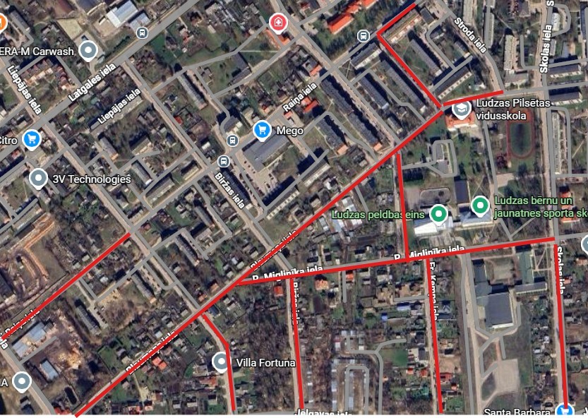- Raiņa ielas posms no Dagdas ielas līdz Liepājas ielai