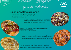 Aicinām šajā mēnesī pievienoties mūsu garšu piedzīvojumam. Četras nedēļas sniegsim iespēju picās nobaudīt vietējo ražotāju, “Organic Products” un “Čaklā bite”, produkciju, tādējādi parādot, kāda ir mūsdienu Latgales garša Ludzā, un cik dažādi var izmantot vietējo ražotāju labumus. Katru nedēļu būs viena īpaši šim notikumam izstrādāta nedēļas pica, kurā tiks iekļauti produkti no “Organic Products” un “Čaklā bite”:
