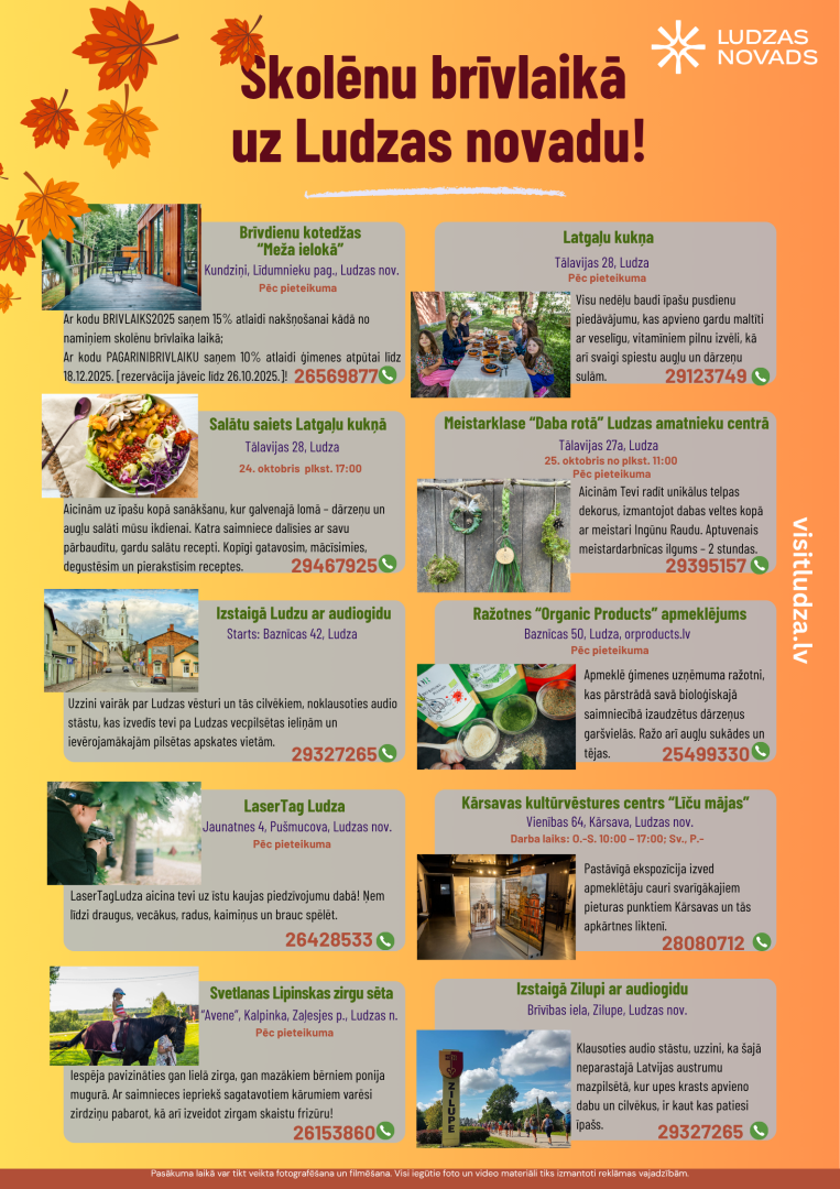 Ludzas novada Tūrisma centrs ir sagatavojis īpašus piedāvājumus, kas radīti ar mīlestību un rūpēm par skolēnu brīvlaika piedzīvojumiem ģimenēm ar bērniem. Iedvesmojošas iespējas, kas ļaus ikvienam, lielam un mazam, atklāt Ludzas novada dārgumus un radīt neaizmirstamas atmiņas kopīgajos brīžos.