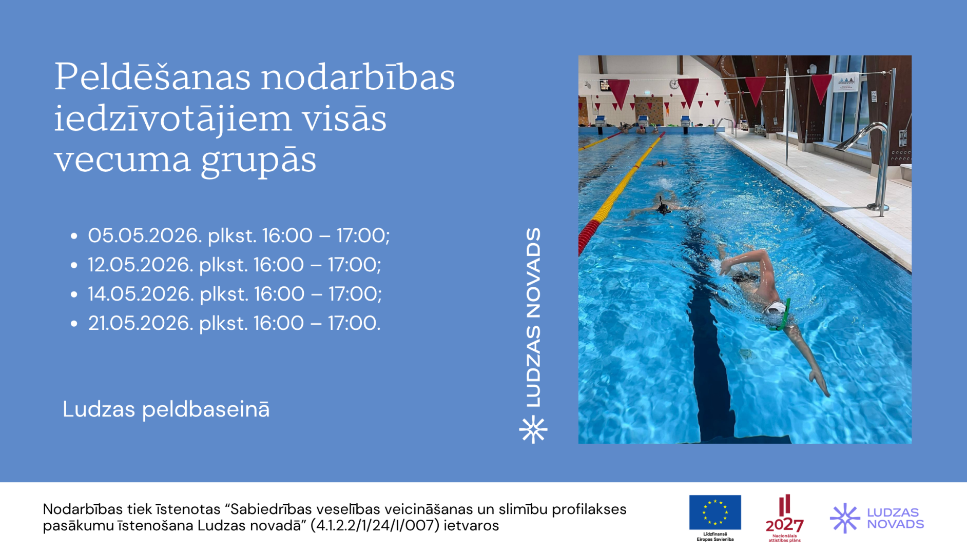 Īstenošanas vieta: Ludzas peldbaseins (P. Miglinīka iela 27B, Ludza, Ludzas novads).