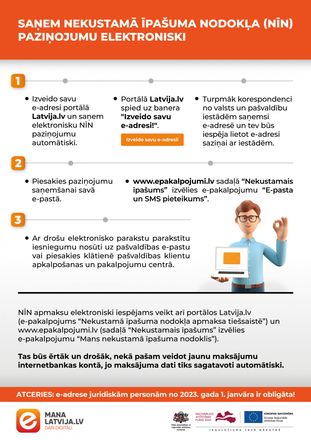No 2023. gada 1. janvāra juridiskām personām e-adreses lietošana ir obligāta!