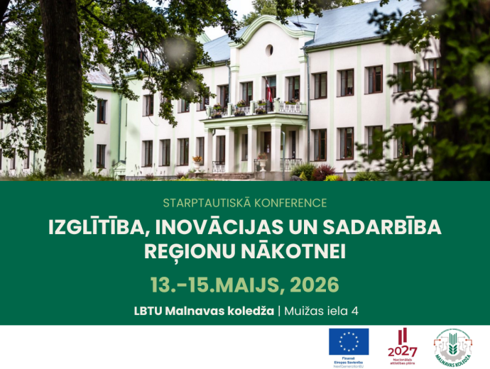 LBTU Malnavas koledža aicina uz starptautisku konferenci “Veidojot nākotni kopā!”, kas tiek organizēta Eiropas Savienības Atveseļošanas fonda projekta “LBTU institucionālās kapacitātes stiprināšana izcilībai studijās un pētniecībā” ietvaros.