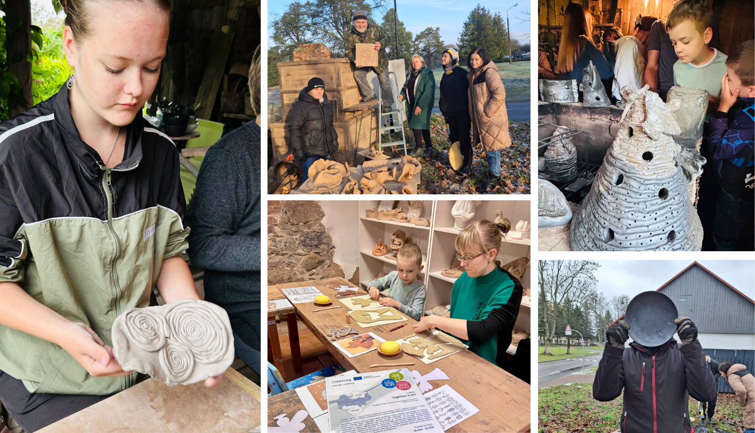 Mākslas jomā sadarbība noritēja klusāk un lēnāk – darbs ar mālu un kopīgas sarunas darbnīcās Ludzā un Molētos apliecināja, ka projekta centrā ir cilvēks. Iedvesma tika gūta arī ārpus ierastās vides, apmeklējot Liepājas Mūzikas, mākslas un dizaina vidusskolu un radošās darbnīcas Krāslavā.