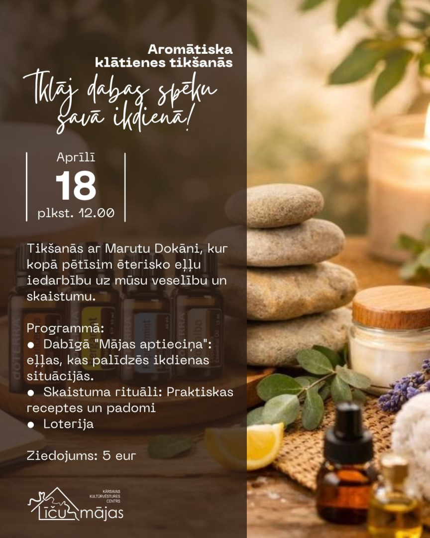 18. aprīlī plkst. 12.00 Kārsavas kultūrvēstures centrs "Līču mājas" aicina uz aromātisko tikšanos "Atklāj dabas spēku savā ikdienā!".