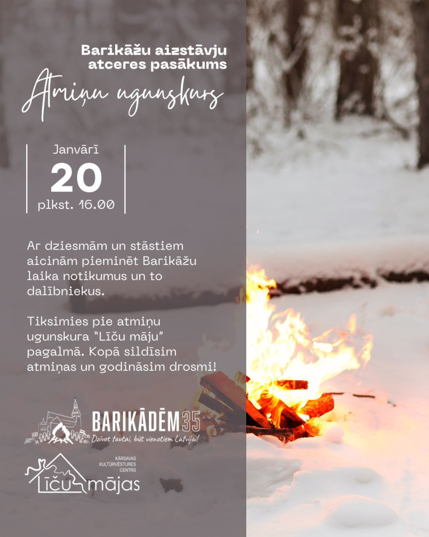 Barikāžu aizstāvju atceres pasākums 20. janvārī plkst. 16.00 aicinām sasildīties pie atmiņu ugunskura Kārsavas kultūrvēstures centra “Līču mājas” pagalmā.