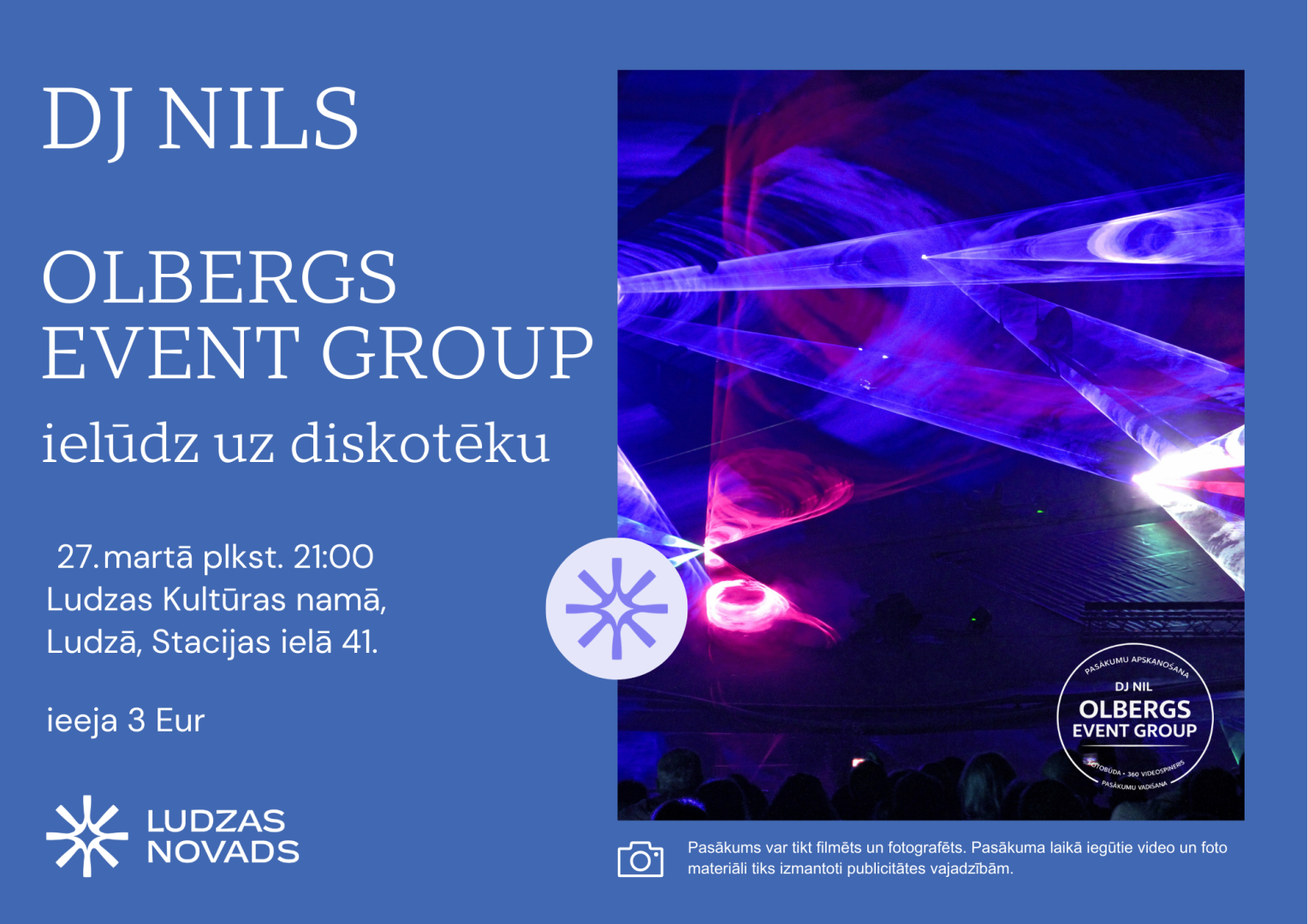 27.03. plkst. 21.00 Ludzas KN - Diskotēka ar DJ NIL Olbergs EVENT GROUP. Ieeja 3,00 EUR.