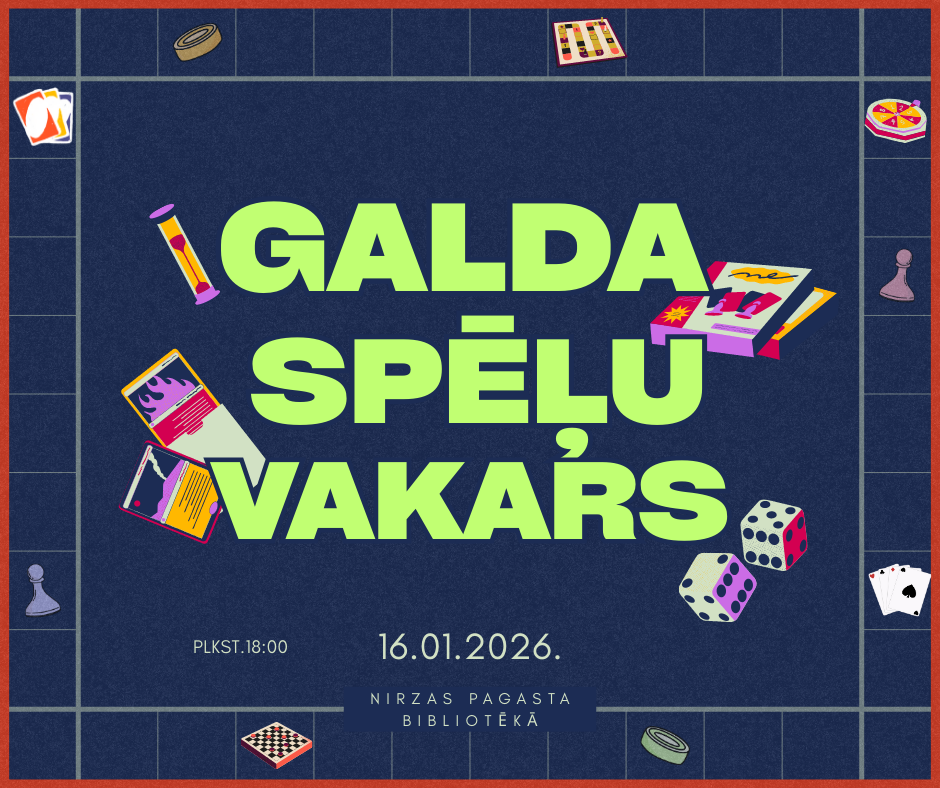 16. janvārī plkst. 18.00 Galda spēļu vakars Nirzas pagasta bibliotēkā.