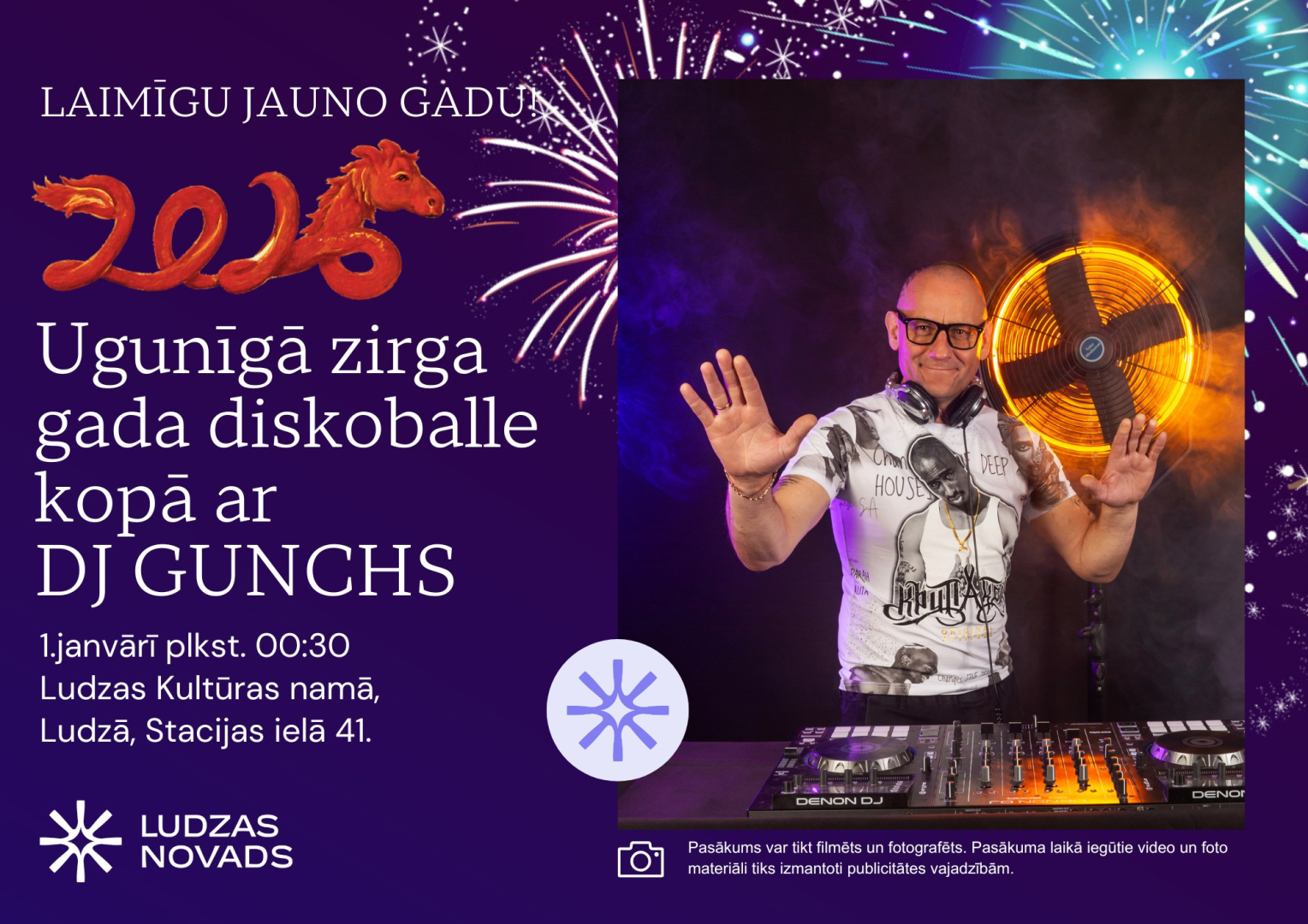01.01.2026. plkst. 00.30 Ludzas KN – Jaungada DiskoBalle kopā ar DJ Gunchs.