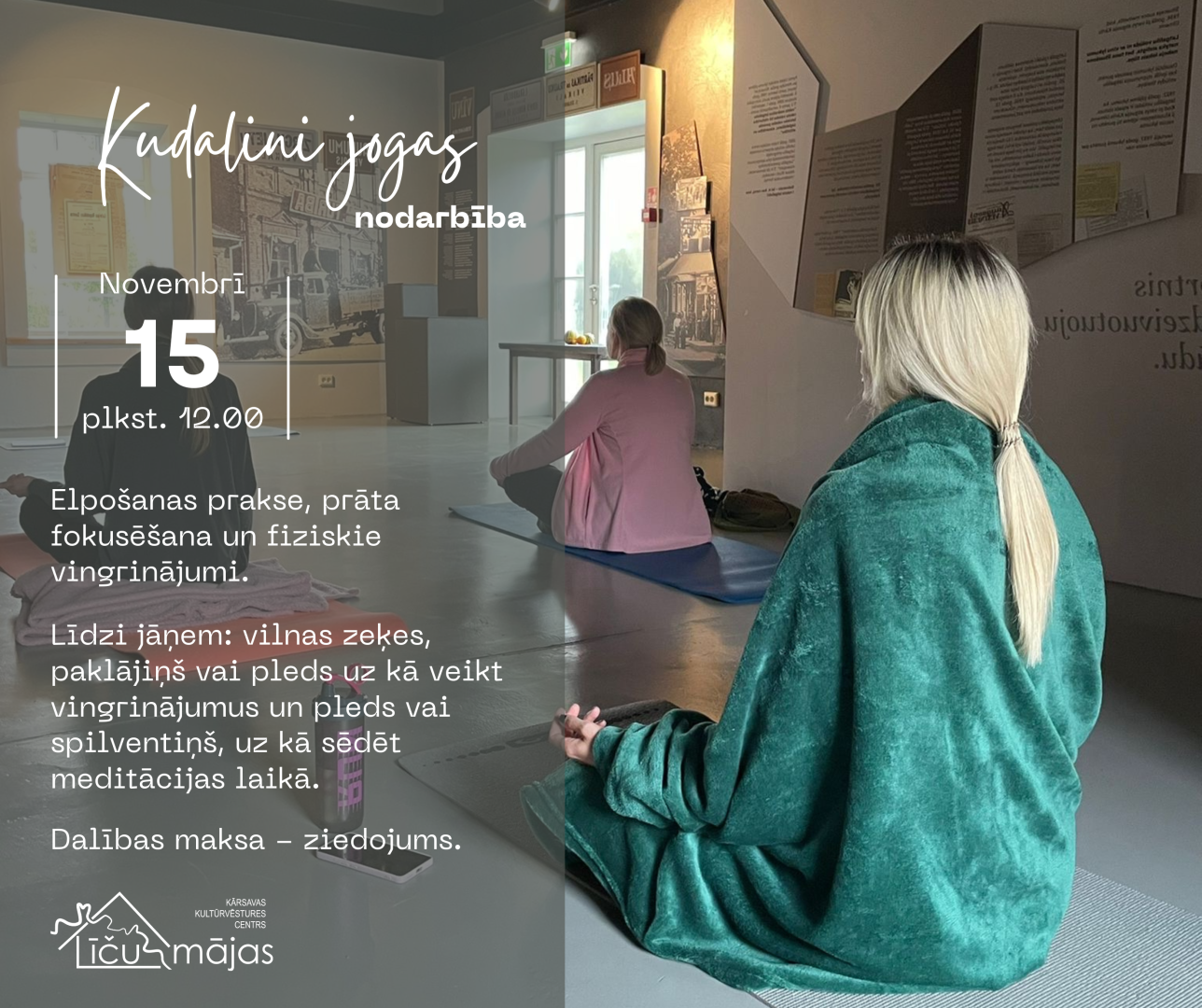 15. novembrī plkst. 12.00 Kārsavas kultūrvēstures centrs "Līču mājas" aicina uz kudalini jogas nodarbību.