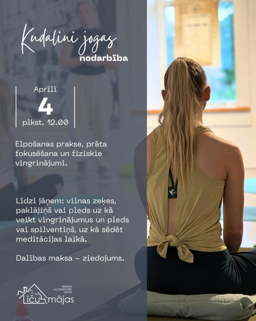 4. aprīlī plkst. 12.00 Kārsavas kultūrvēstures centrs "Līču mājas" aicina uz kudalini jogas nodarbību.