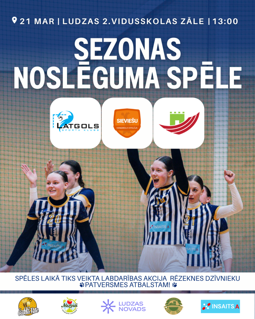 21. martā plkst. 13.00 Ludzas sporta hallē norisināsies Latvijas handbola Virslīgas sievietēm sezonas noslēguma spēle! Uz laukuma tiksies SK Latgols un Salaspils SS komandas.