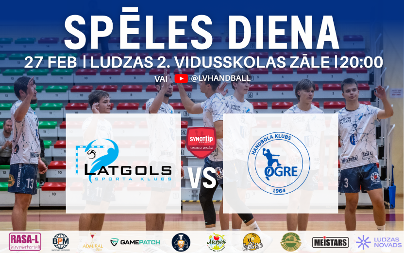27. februārī plkst. 20.00 Ludzas sporta hallē norisināsies Latvijas SynotTip vīriešu virslīgas handbola spēle! Spēlēs SK Latgols un HK Ogre.