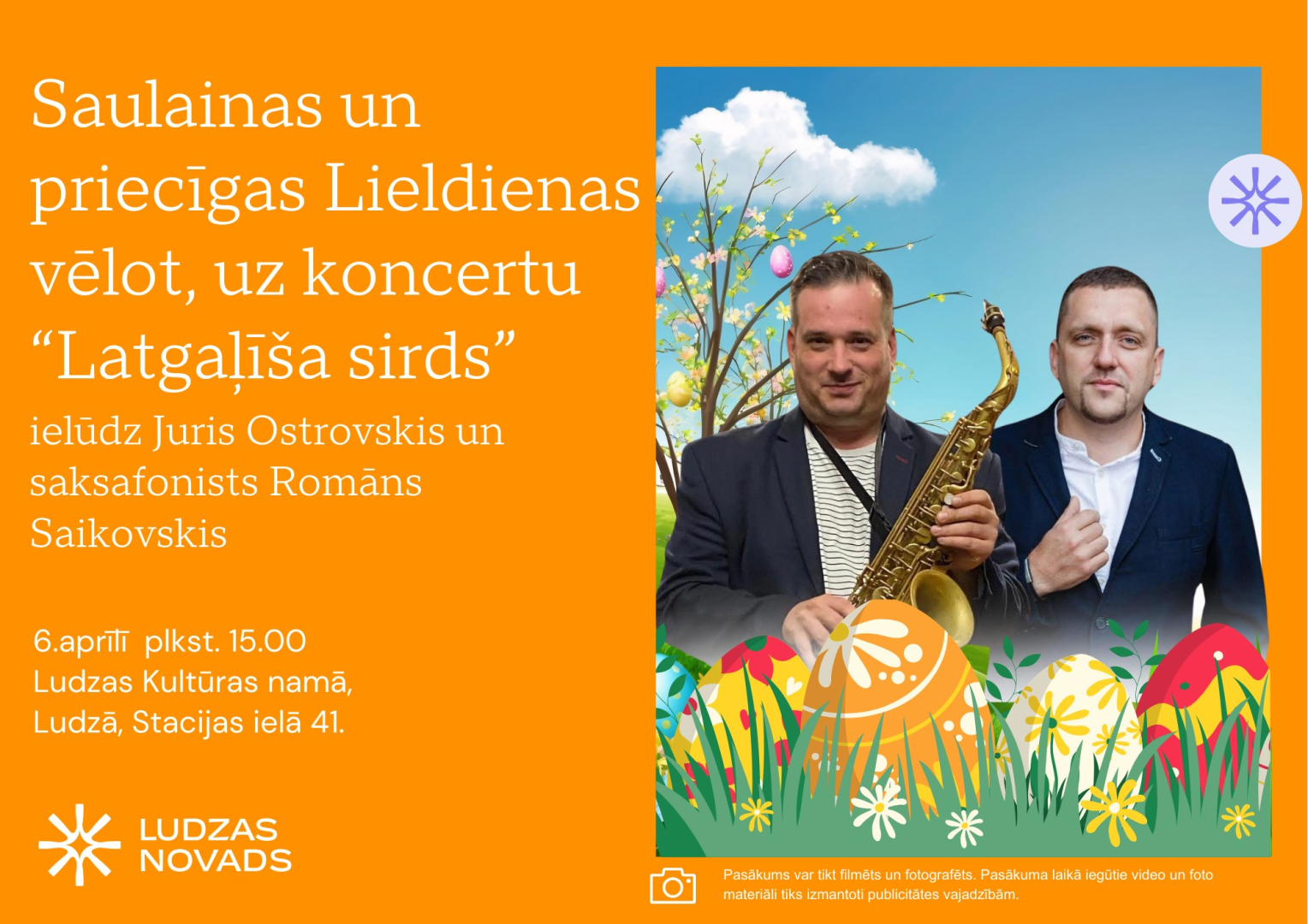 06.04. plkst. 15.00 Ludzas KN - Lieldienu koncerts "Latgaļīša sirds" kopā ar Juri Ostrovski un Romānu Saikovski.