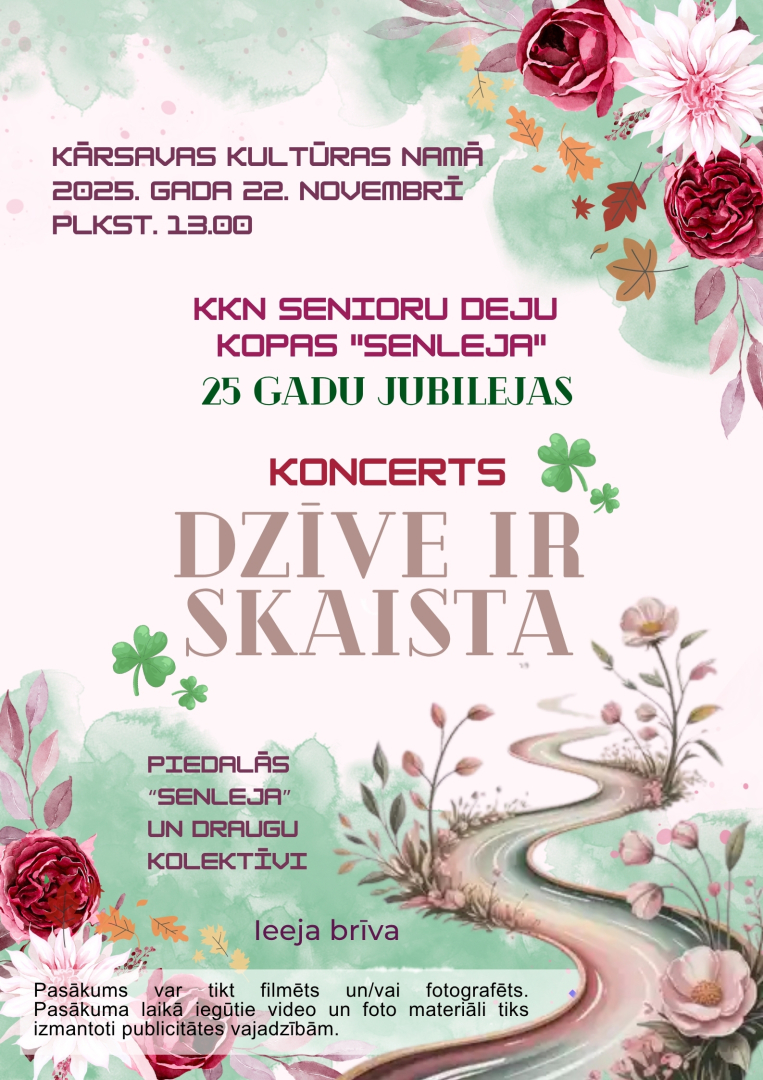 - 22.11. plkst. 13.00 Kārsavas KN – senioru deju kopas “Senleja” 25 gadu jubilejas pasākums. Senlejas un draugu kolektīvu koncerts.
