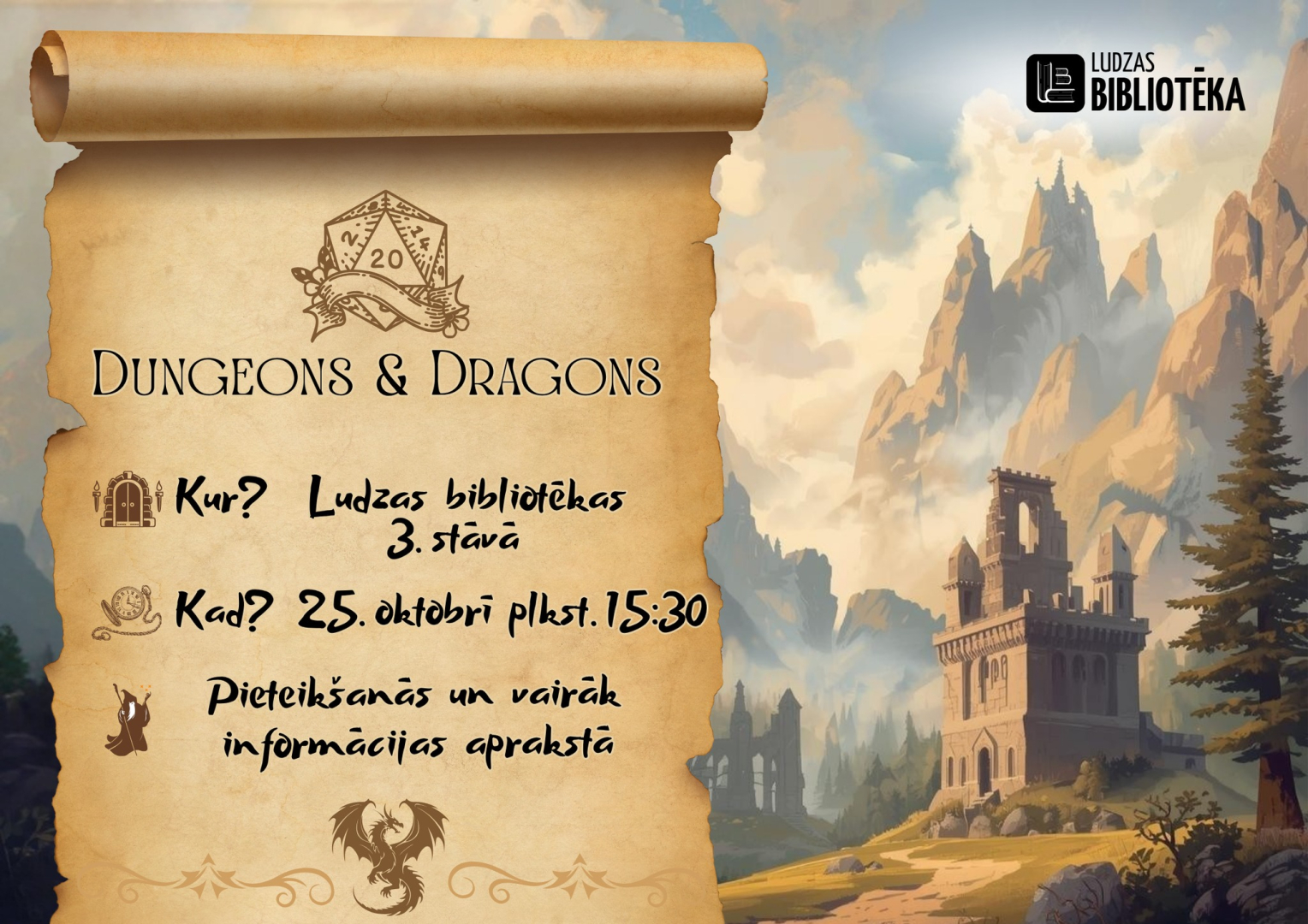 25.10. plkst. 15.30 Spēle “Dungeons & Dragons” Ludzas novada bibliotēkā.