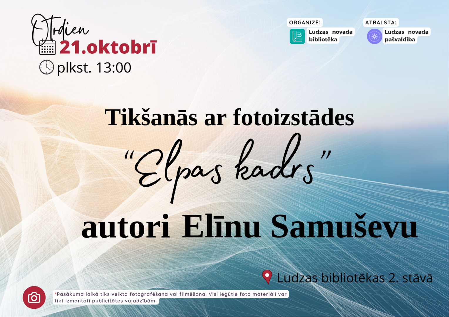 - 21.10. plkst. 13.00 Ludzas novada bibliotēkā notiks tikšanās ar fotoizstādes "Elpas kadrs" autori Elīnu Samuševu.