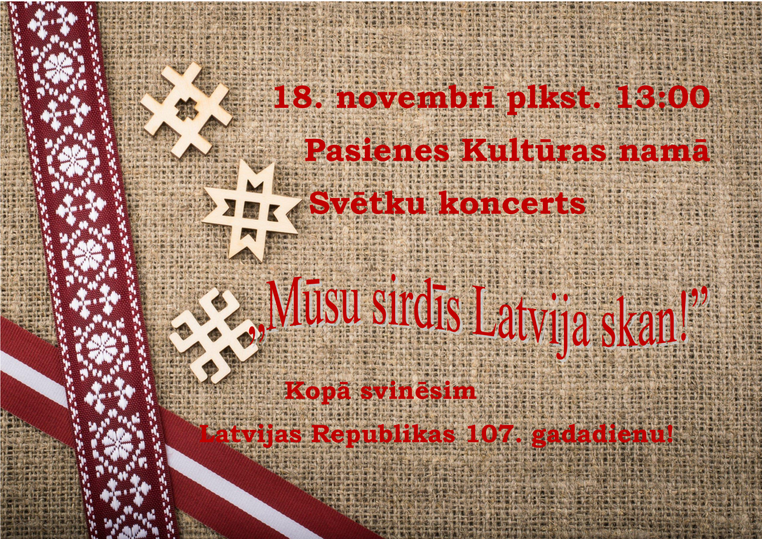 - 18.11. plkst. 13.00 Pasienes KN – valsts svētku koncerts “Mūsu sirdīs Latvija skan”.