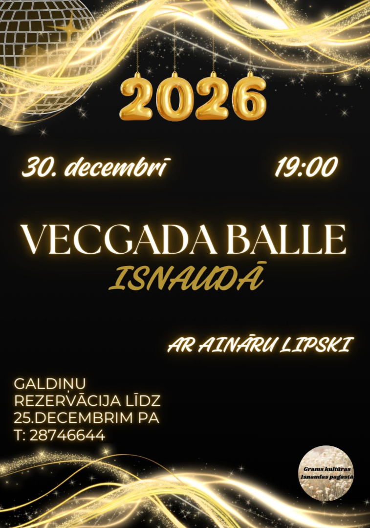- 30.12. plkst. 19.00 Isnaudas KN – Vecgada balle ar Aināru Lipski.