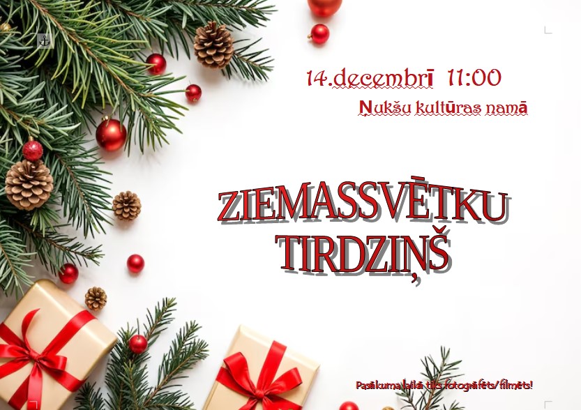- 14.12. plkst. 11.00 Ņukšu KN – Ziemassvētku tirdziņš "Ziemassvētkus gaidot".