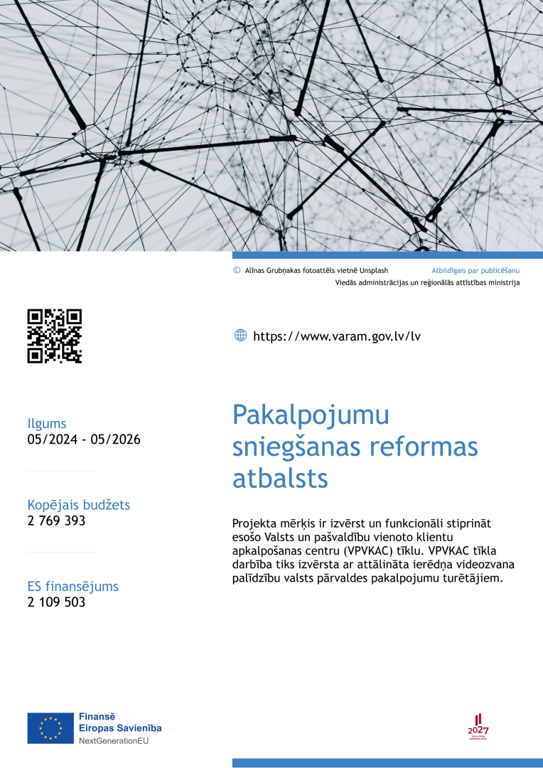 Projekta mērķis: Ieviešot Koncepcijas par publisko pakalpojumu sistēmas pilnveidi (Ministru kabineta (turpmāk – MK) 2013. gada 19. februāra rīkojums Nr. 58) uzdevumus, tika uzsākta Valsts un pašvaldību vienoto klientu apkalpošanas centru (turpmāk - VPVKAC) izveide ar mērķi nodrošināt valsts pārvaldes pakalpojumu pieejamību atbilstoši “vienas pieturas aģentūras” principam, sniedzot iespēju pieteikt pieprasītākos pakalpojumus tuvāk iedzīvotāja dzīvesvietai. Valdības rīcības plāna Deklarācijas par A. K. Kariņa vadītā MK iecerēto darbību īstenošanai 246.2. pasākumā dots uzdevums turpināt attīstīt vienas pieturas aģentūras pakalpojumu saņemšanu gan klātienē, gan digitāli, sekmēt iestāžu sadarbību tiešsaistē. Izpildot augstāk minētos uzdevumus, 35 pašvaldībās darbojas 216 VPVKAC, nodrošinot iespēju klātienē vienkopus pieteikt pašvaldību pakalpojumus un 19 valsts pārvaldes iestāžu 142 pakalpojumus.